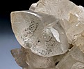 ![]() | This is a wonderful cluster of clear calcite crystals with a prominent calcite twin from the Upper New Street Quarry in New Jersey (see mindat.org page), one of the most famous trap rock quarries in New Jersey. The specimen is in excellent condition, with no damage, except the typical contact along edges of the cluster. Minor heulandite and other species are associated. A specimen label is included.