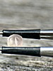 ![]() | ![]() For sale are three exceptional pink gemmy zektzerite crystals. The first photograph shows the strong fluorescence under shortwave ultraviolet light. The second photograph shows the color in natural daylight. Click Here to view a short video showing the three faceted crystals in daylight. A 0.45 ct zektzerite faceted in a mixed cut called "Lucciola" (left), 6mm x 4mm. Like most zektzerite it is somewhat fractured. However it is quite scintillating, very gemmy and very pink. The polish is perfect and the meet points are excellent. Another 0.45 zektzerite faceted in a slightly different square barion design called "Trattola" (center). This gem measures just under 5mm x 5mm. Although somewhat fractured it is very gemmy and very pink. On one side of the girdle there is a slight pitting from the surface of the original rough, barely visible to the naked eye. The polish is perfect and the meet points are excellent. Finally a .20 ct 4mm x 4mm zektzerite faceted in a round design called "Tensor"(right). Although it has some minor internal craziness, this stone is not fractured and is extremely gemmy and pink. Visit my Washington Pass page at Washington Minerals for more information about this mineral occurence.