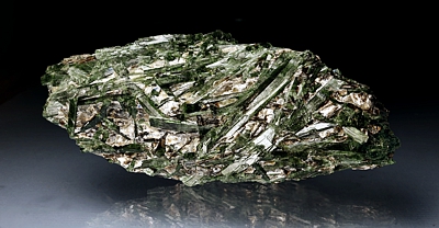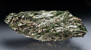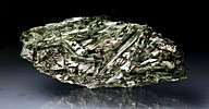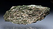 ![]() | This is a wonderful cabinet-sized combination of dark green actinolite blades in pearly silver talc matrix. This is a large, high quality actinolite specimen from the Wenatchee Lake area in Chelan County, Washington. Specimens of this quality are becoming harder and harder to find on the market. A specimen label is included. Visit my Wenatchee Ridge page at Washington Minerals for more information about this mineral occurence.