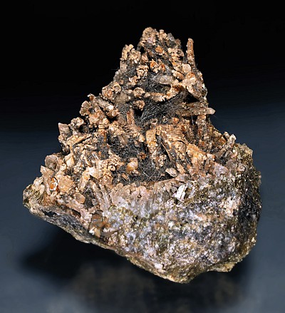 ![]() | ![]() This is an aesthetic cluster of slender acicular pyromorphite crystals on a bed of hematite from the Madjarovo deposit in Bulgaria. the specimen is in excellent condition. Madjarovo was once an important mining area during the mid to late twentieth century, primarily for the extraction of lead and zinc. For the past few decades, mining activities in the Madjarovo area has decreased significantly, with only some small-scale private operations still active. This is a great large thumbnail/toenail specimen for the pyromorphite collector. A specimen label is included.