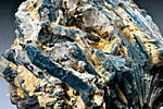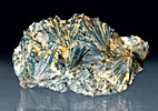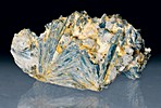 ![]() | ![]() This is a lustrous cabinet-sized specimen of silvery crystalline stibnite blades with secondary yellow to brown stibiconite from the Lucky Knock Mine in Okanogan County, Washington. This specimen is from the ore collection of the late and great Bart Cannon. A specimen label is included.