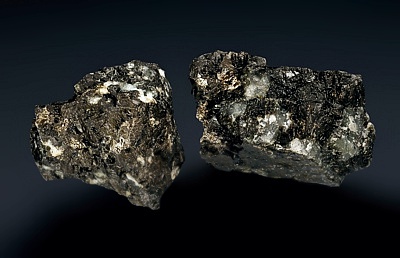 ![]() | For sale are two ore specimens of dark sulfidic pegmatitic peridotite from the Johns-Manville Reef (J-M Reef) of the Stillwater Complex in Montana. The sulfides (primarily chalcopyrite, pentlandite and pyrrhotite) host platinum group metals (PGMs). The pentlandite contains a high concentration of palladium (substituting for nickel in the crystal structure). The host rock is a pegmatitic peridotite (with oikicrystic pyroxene and plagioclase). A specimen label is included.