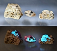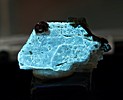 ![]() | ![]() For sale is a specimen of alkali granite with fluorescent zektzerite. Massive crystals (unterminated) of white zektzerite can be found surrounded in a matrix comprised mostly of white microcline, light gray smokey quartz, black arfvedsonite and minor salmon-colored elpidite. The zekktzerite grains are found under short-wave ultraviolet light with its strong pastel-blue fluorescence as shown in the photograph. This rock specimen would make an absolutely wonderful addition to any fluorescent mineral collection. A specimen labels are included. Visit my Washington Pass page at Washington Minerals for more information about this mineral occurence.