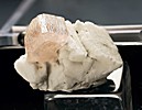 ![]() | ![]() This is a wonderfully aesthetic thumbnail of quartz and red stilbite filling an amygdule in basalt from Mill Creek, Polk County, Oregon. The specimen is mounted in a pedestal-style 1-1/4 inch perky box with specimen label.