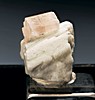 ![]() | ![]() This is an aesthetic gemmy pink zektzerite crystal with an attached microcline crystal from a miarolitic cavity within the alkaline granite of the Golden Horn Batholith located at Washington Pass, Washington. The specimen exhibits beveled termination faces. There is some damage on the side of the crystal, hence the reduced price (a very good price). Zektzerite fluoresces light blue under short-wave ultraviolet light. The specimen is professionally mounted in a pedestal-style perky box with a specimen label. Visit my Washington Pass page at Washington Minerals for more information about this mineral occurence.