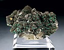 | For sale is an attractive specimen of lustrous dark green intergrown prismatic epidote crystals with a few small terminated quartz crystals from the Green Monster Mountain, Prince of Wales Island, Alaska. This is a very attractive small cluster with perfect terminations and the base of the crystals separated from the matrix. A specmen label is included.