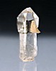 | This is an outstanding pristine gem quartz scepter with a curved tan-colored ankerite crystal perched on one of the scepter faces from the Spruce Claim along the Middle Fork of the Snoqualmie River near North Bend, King County, Washington (see mindat.org page). The quartz is extremely gemmy for the locality. A specimen label is included. Visit my Spruce Ridge Claim page at Washington Minerals for more information about this mineral occurence.