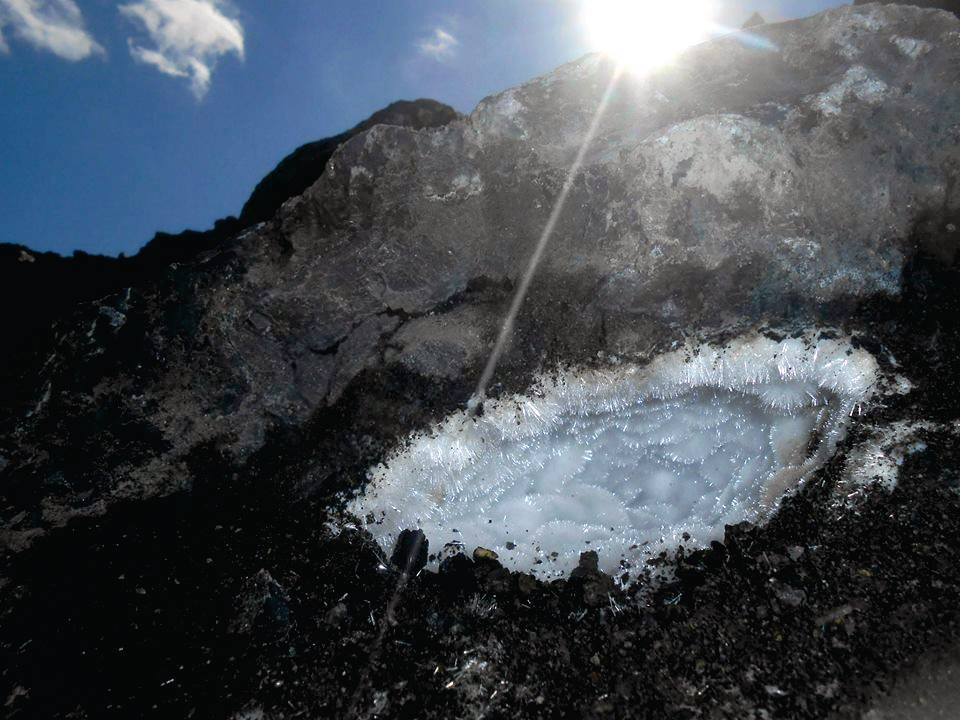 - Occurs as small colorless trapezohedral crystlas lining some amygdules. Transparent crystals turn opaque when removed from the ground due to dehydration.
